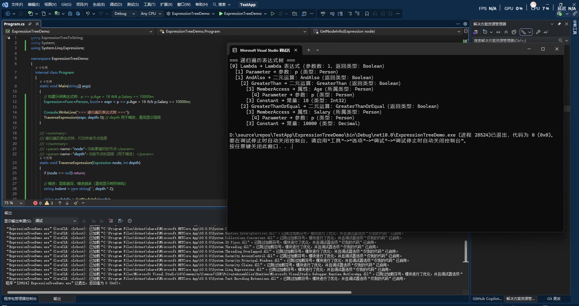 表达式树是一个树形结构,可以通过其属性查看内部组成。